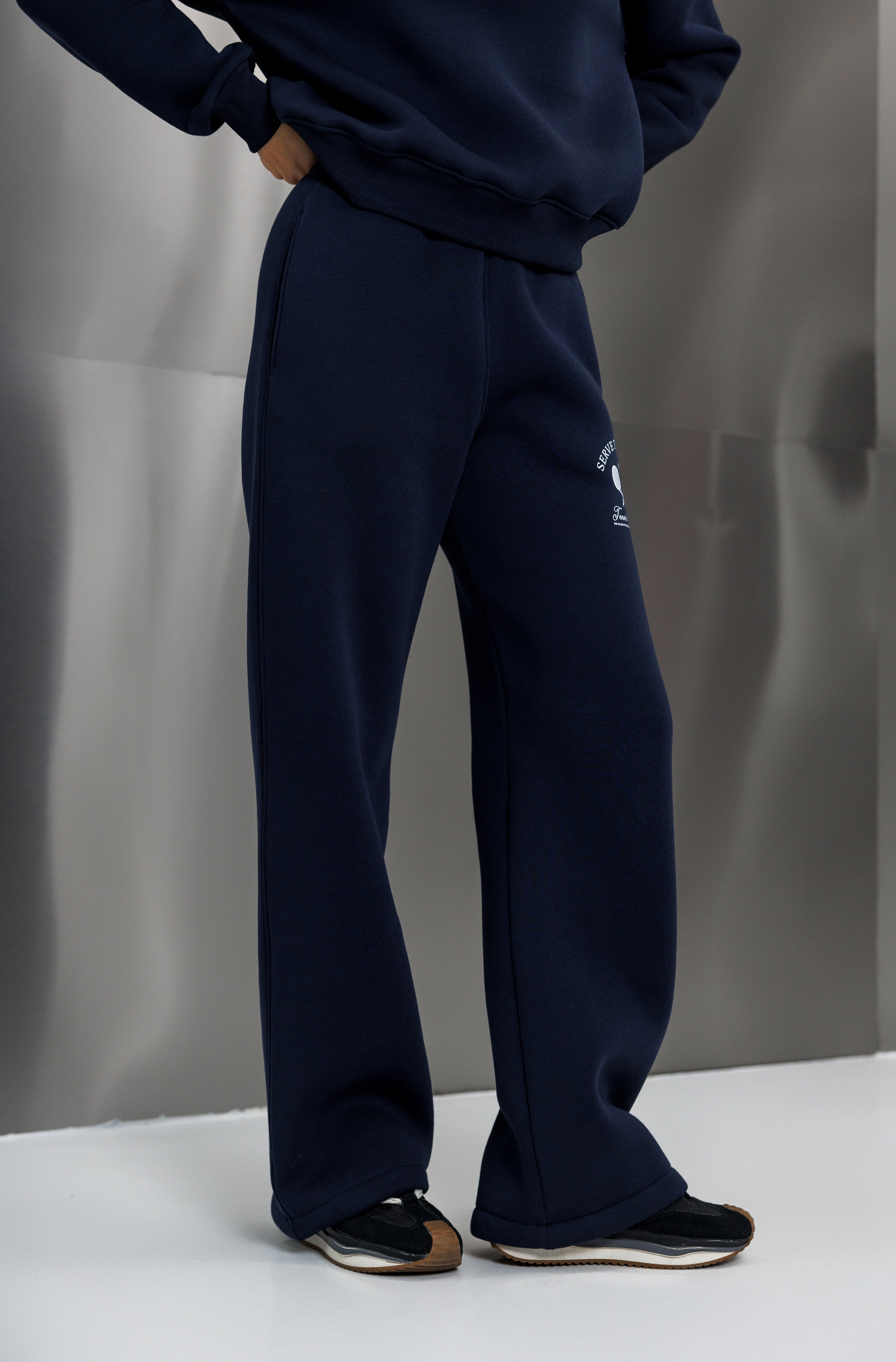 Штани з еластичним поясом. Фасон палаццо за потреби легко трансформується в джогери завдяки прихованим регуляторах.