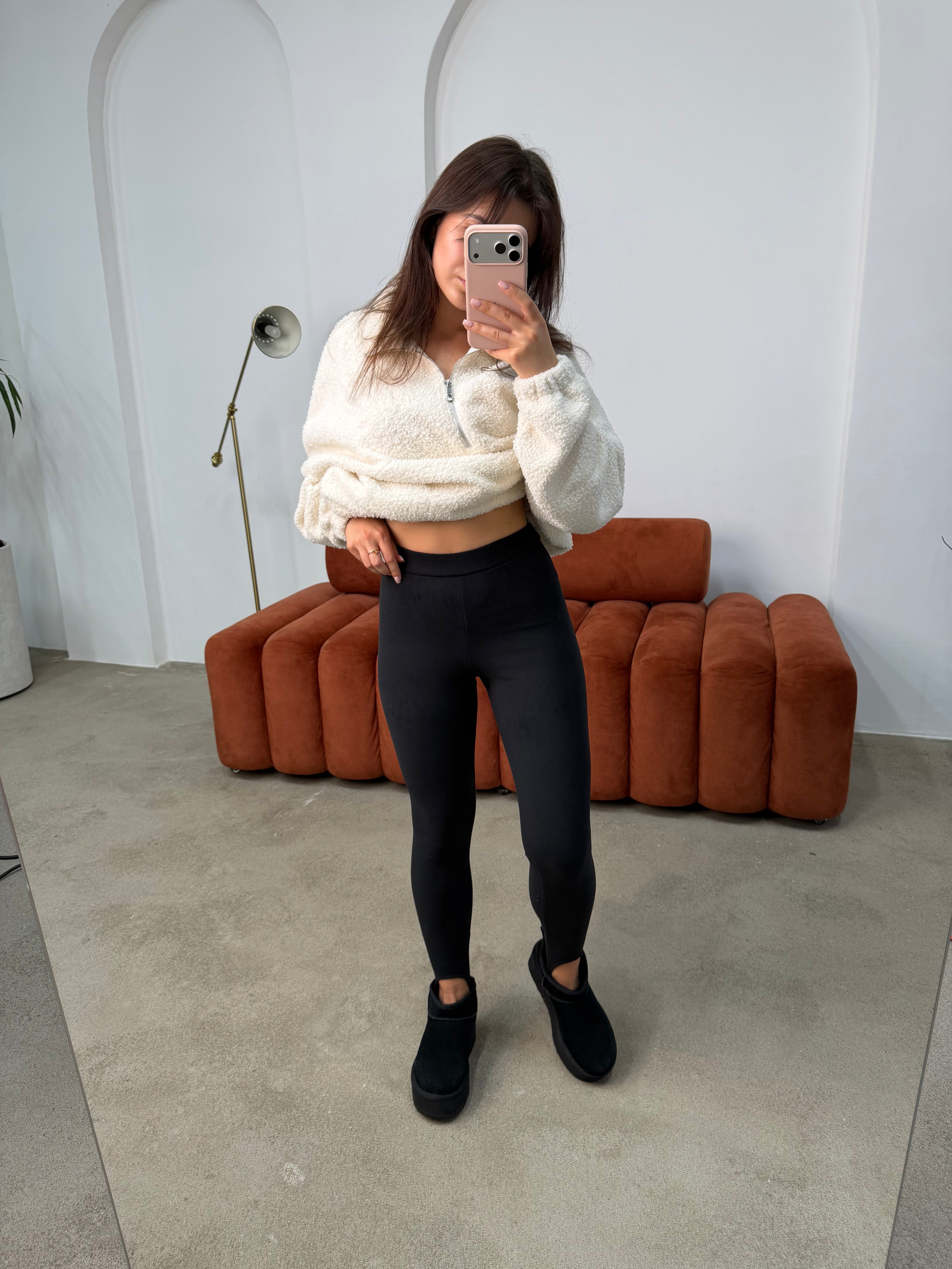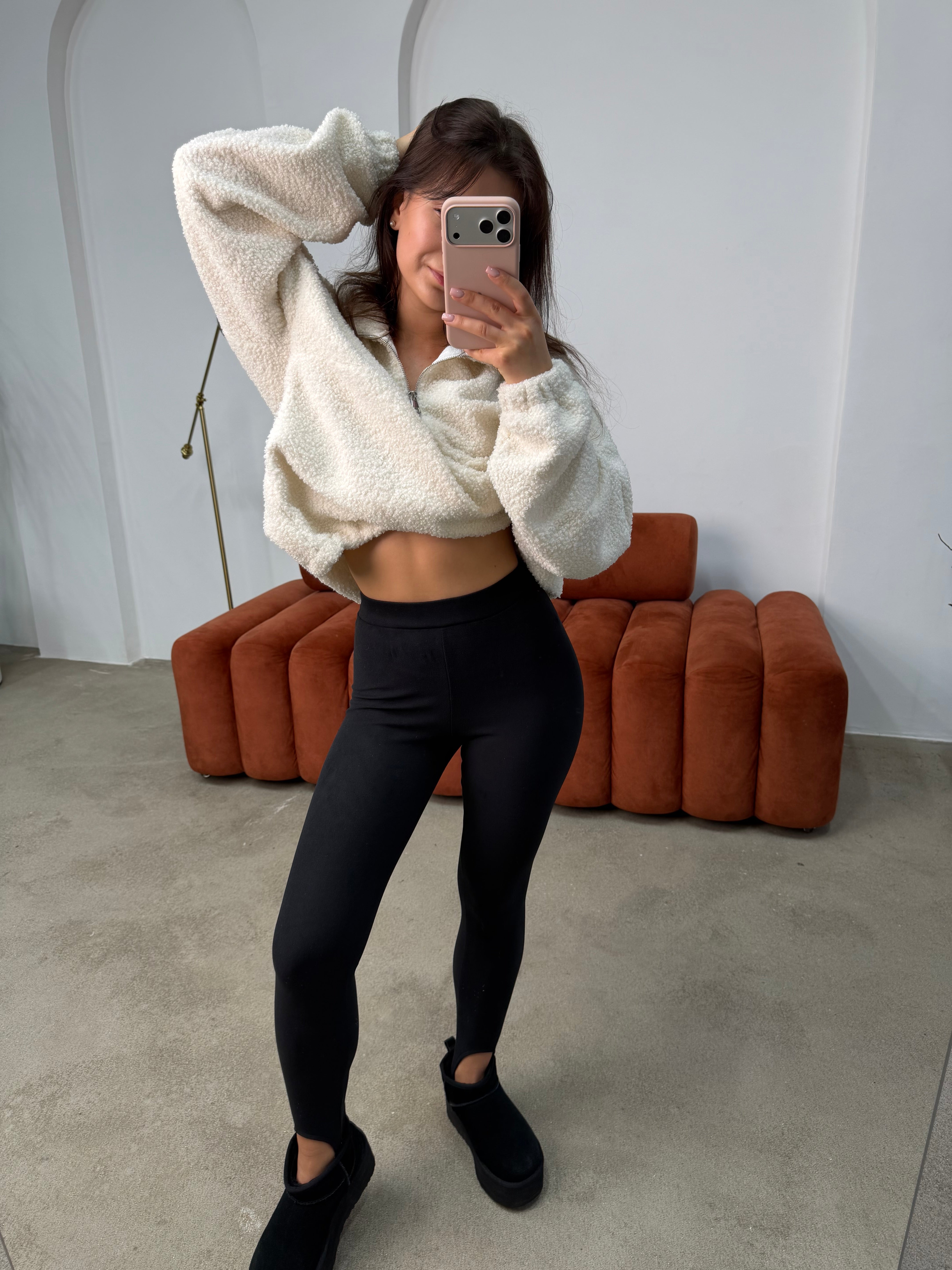 Тканина із надзвичайно м’якою, приємною “оксамитовою” та “пудровою” текстурою. Матеріал добре тягнеться у 4-х напрямках, не сковує рухів, чудово зберігає тепло. Не просвічується навіть при сильному натягу. Не кошлатяться❗️