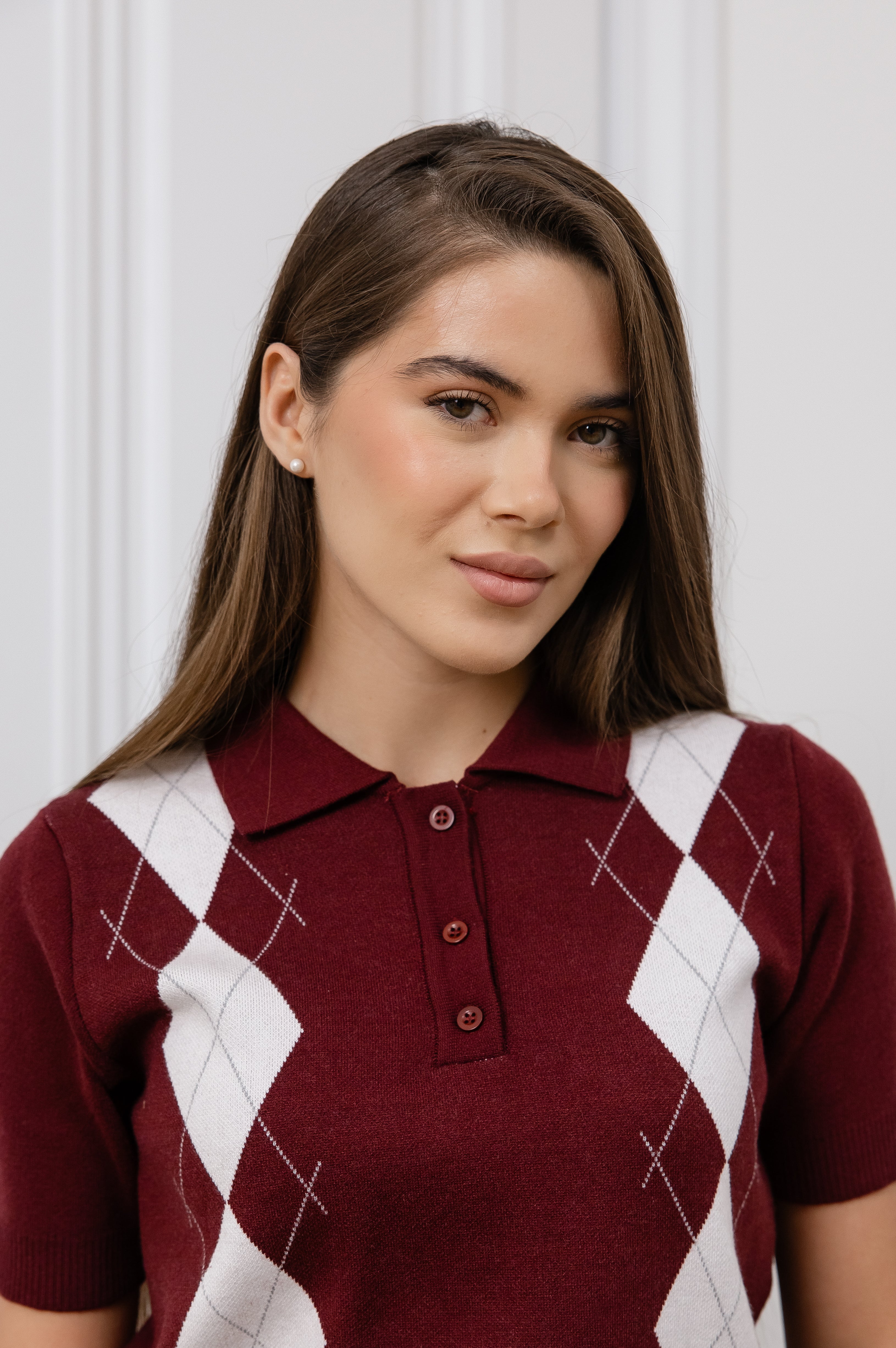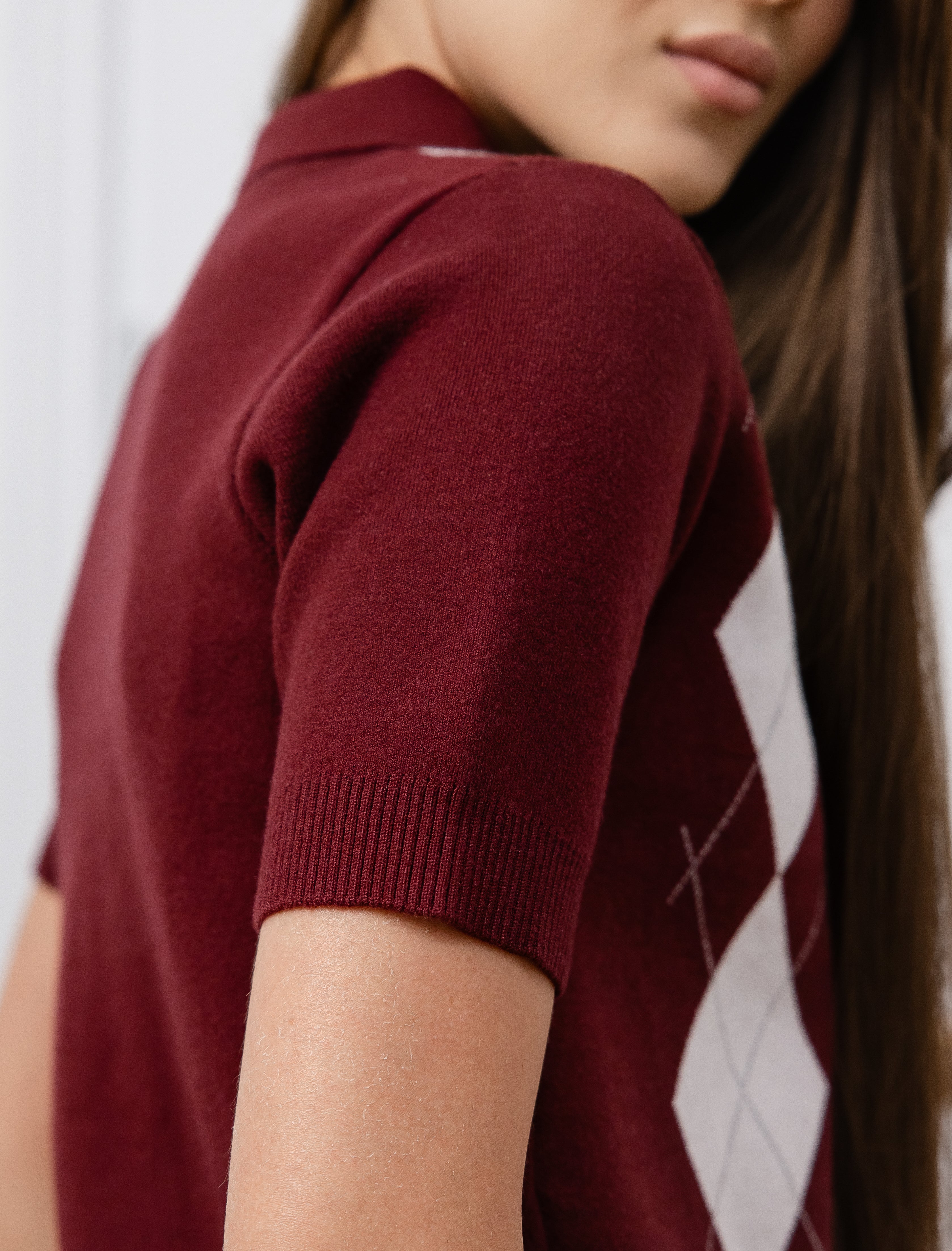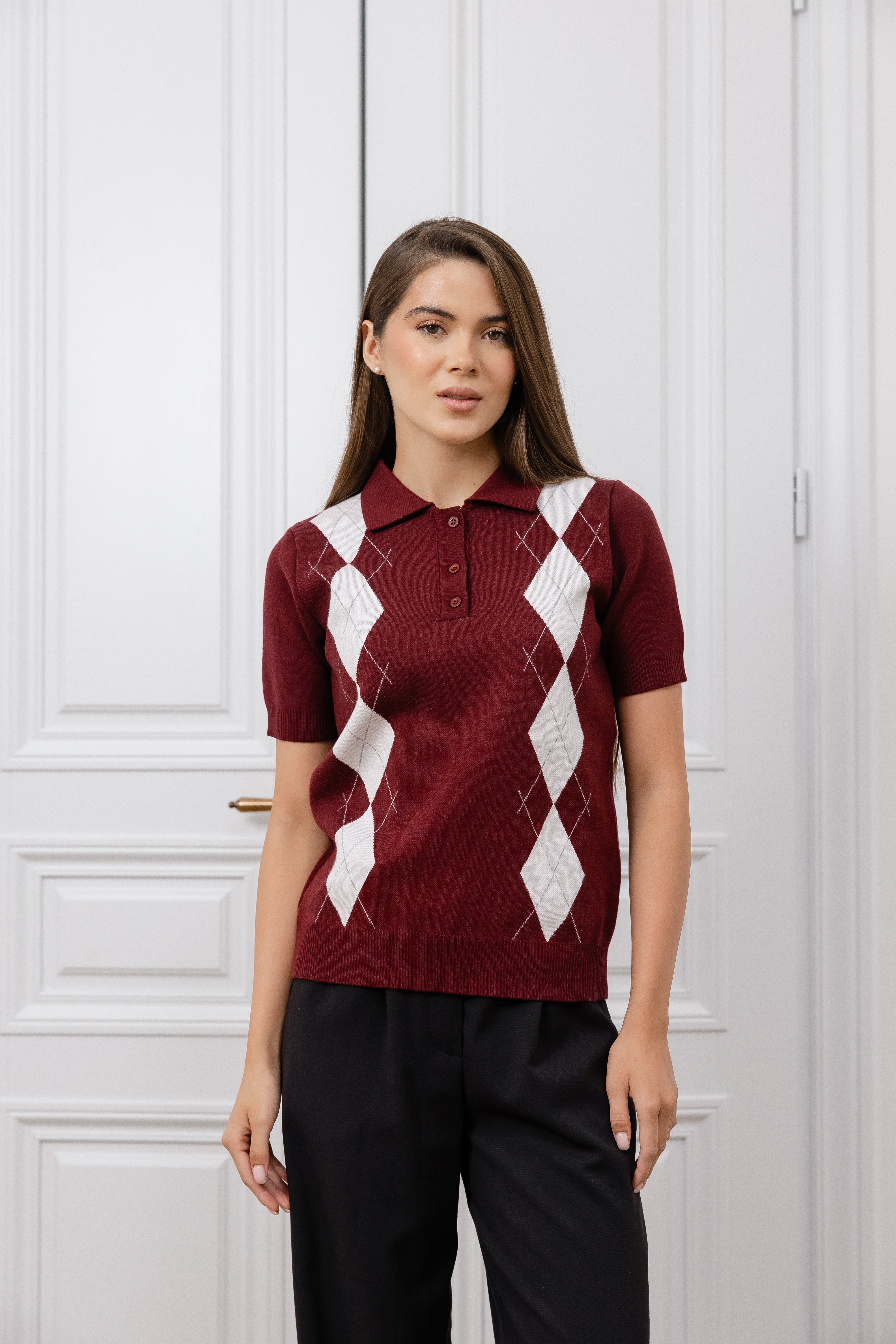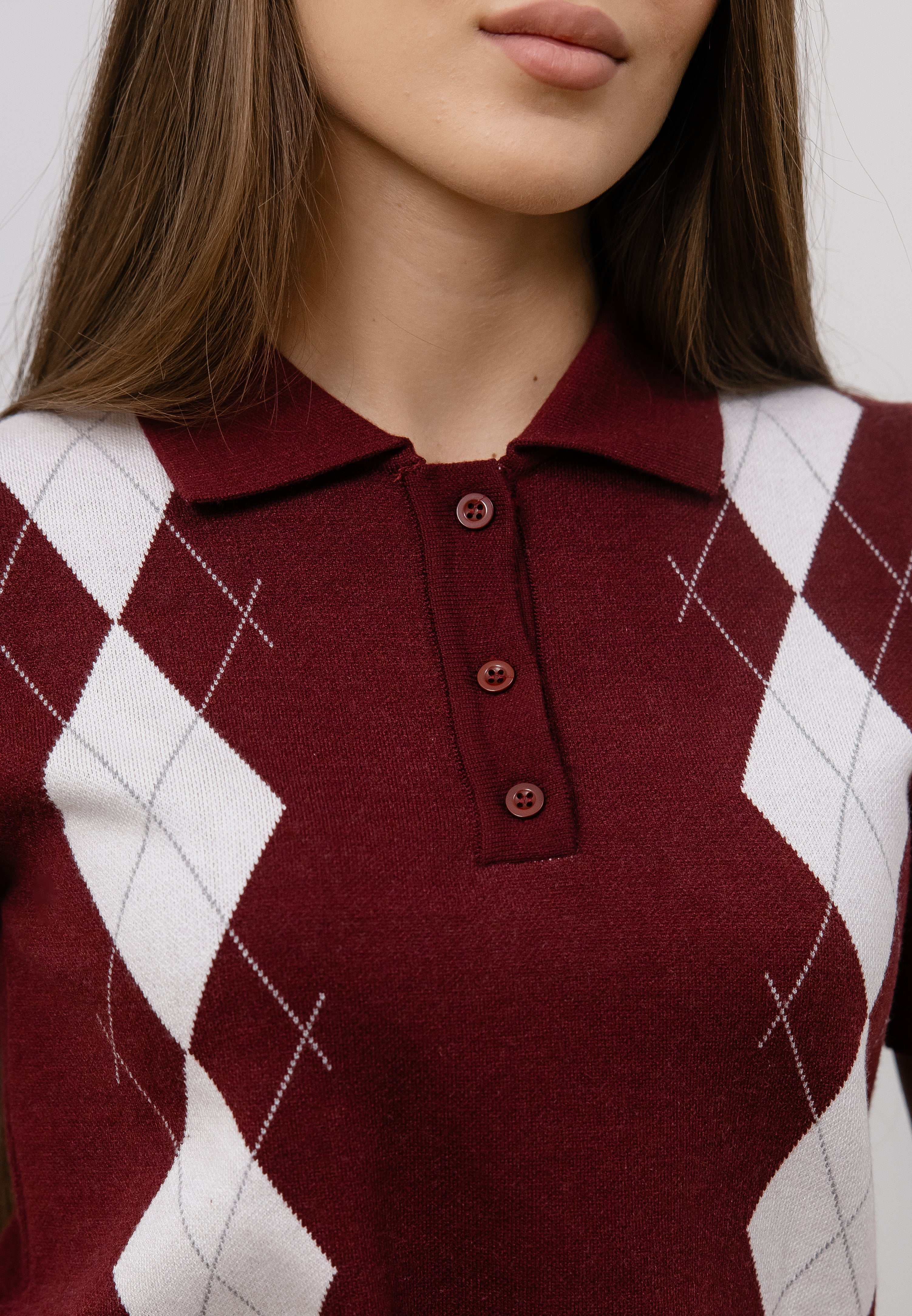 Виготовлене з щільного та теплого трикотажу, це поло поєднує комфорт і елегантність. М’яка фактура дарує відчуття затишку, а класичний ромбовий візерунок додає образу нотку ретро-шику. Завдяки коміру на ґудзиках і акуратному крою модель чудово підходить як для повсякденного стилю, так і для smart-casual образів у прохолодний сезон.